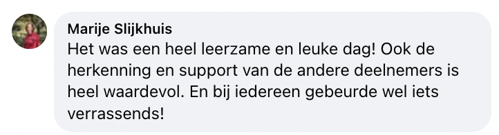Wat maakt dat dit niet het goede moment voor je? Is er ooit wel een goed moment? Als je hart een sprongetje maakt, probeer het dan gewoon. Wat heb je te verliezen? Mocht je twijfelen, neem dan even contact op, dan kunnen we het erover hebben. Voor nieuwe data, mail even, schrijf in voor de nieuwsbrief of hou mijn Facebookpagina in de gaten.